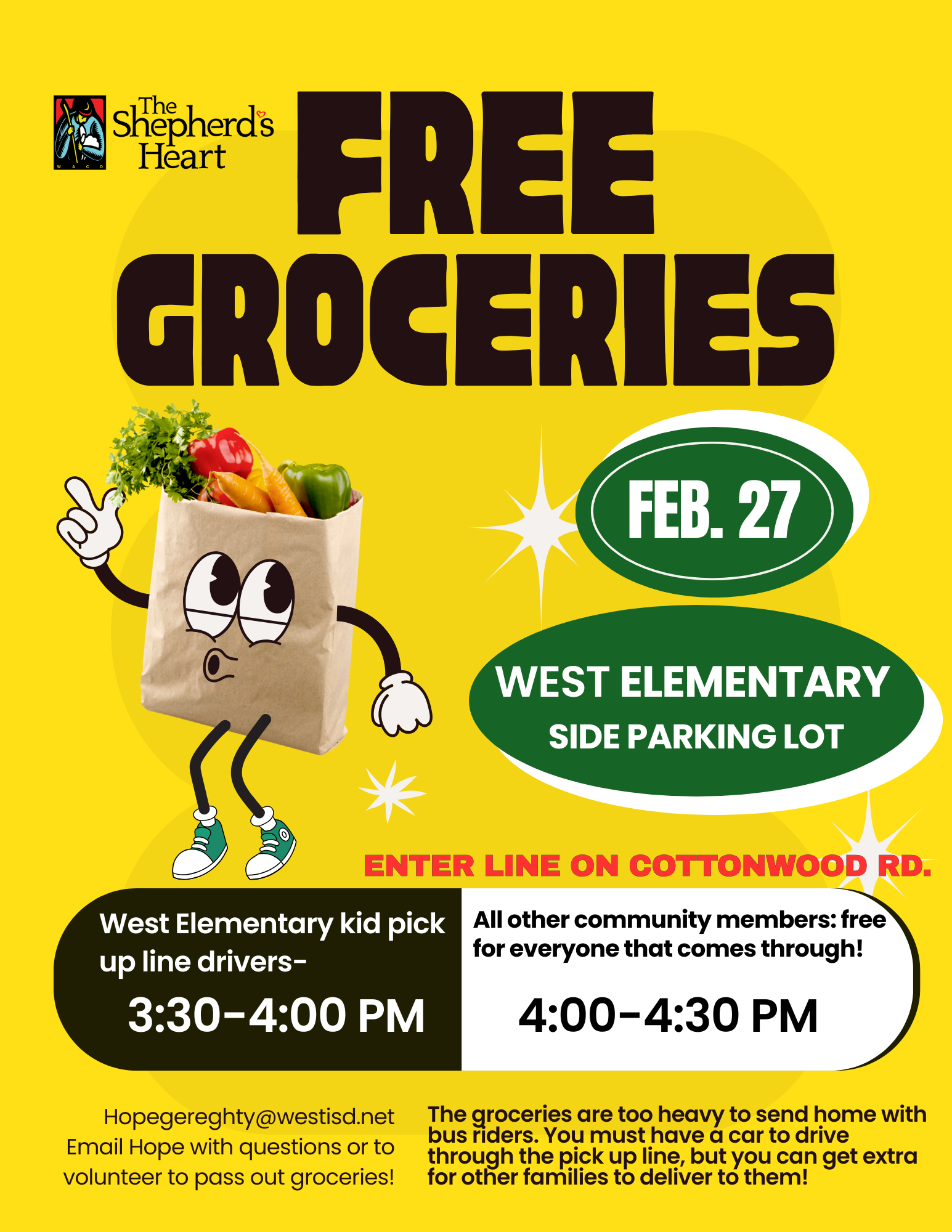 New Shepherd's Heart Partnership Reminder: Tomorrow, Friday, February 27, 2026, is the kick-off datefor the district's new partnership with Waco's Shepherd's Heart. The plan is to have 6 pallets of...